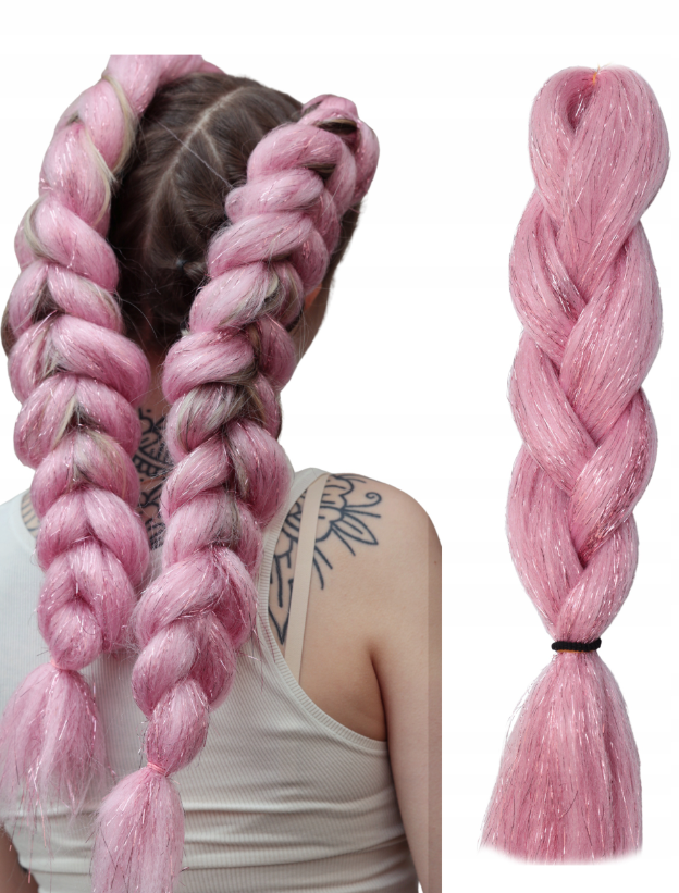 Szintetikus haj - Fénylő rózsaszín - glitter szálakkal